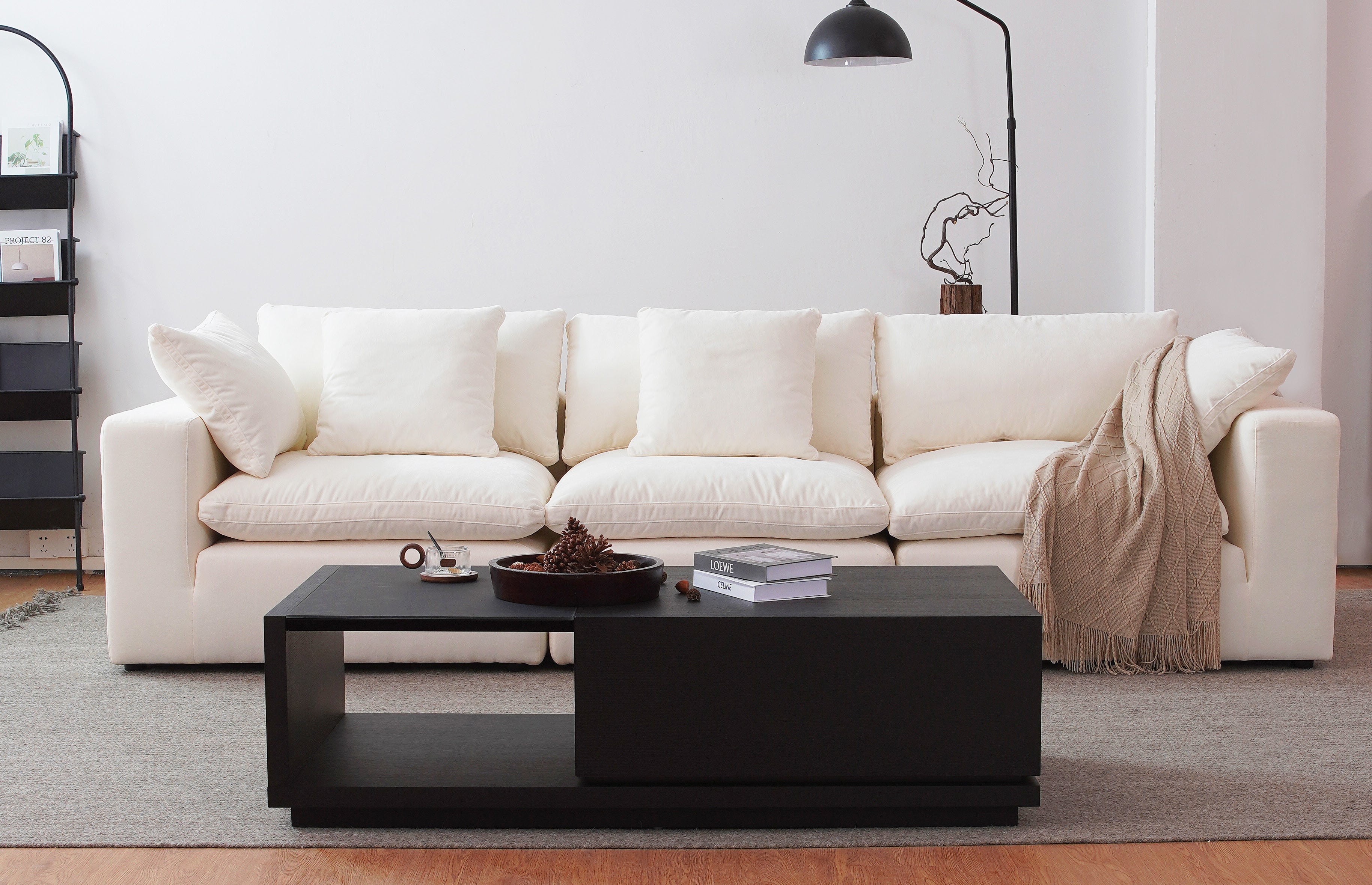 3-Seat Modular Sectional Sofa & Ottoman, Natural White